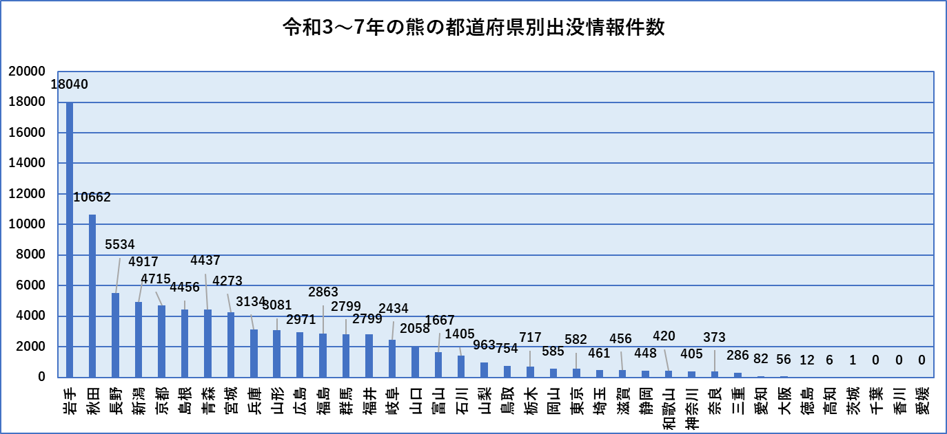 熊の出没状況・・環境省と都道府県データから