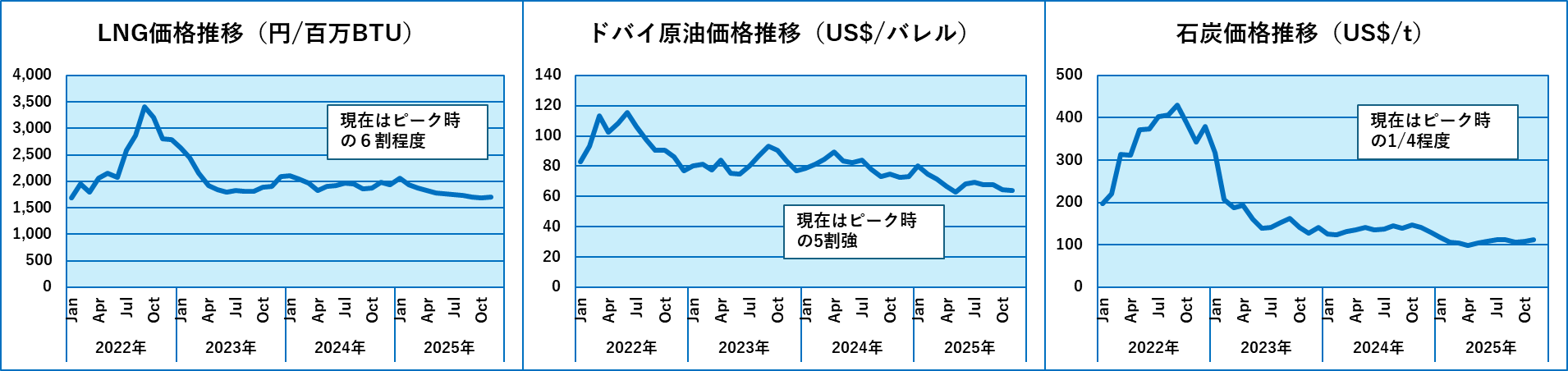 また、エネルギーコストが2022年当時と比べたら下がっていることも事実です。(下図:数値は世界経済のネタ帳から引用)