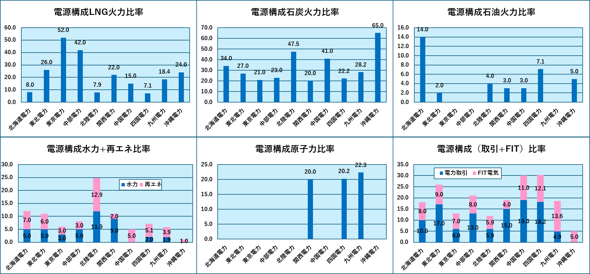 どうしてこの3社だけ電力量単価を大幅にあげずにすんだのか、これは電源構成を見るとある程度想像がつきます。データは下記URLから引用させていただきました。2024年の発表で、2022年当時の電源構成となっています。