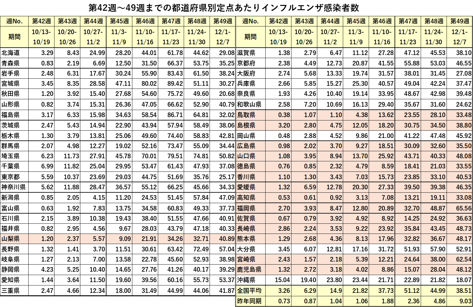 インフルエンザ、全都道府県感染者減少ならず、西日本以前増加中