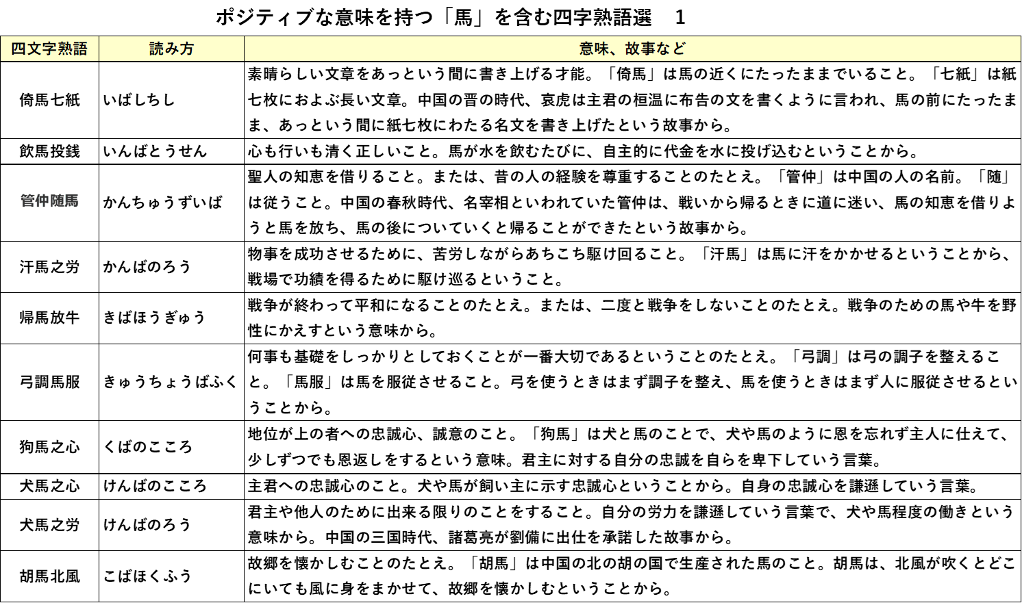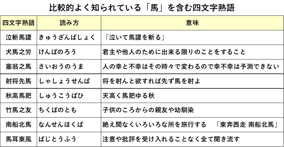 ご参考までに、新年にふさわしいポジティブな意味あいの馬を含む四字熟語だけを集めて、解説付きで載せさせていただきます。