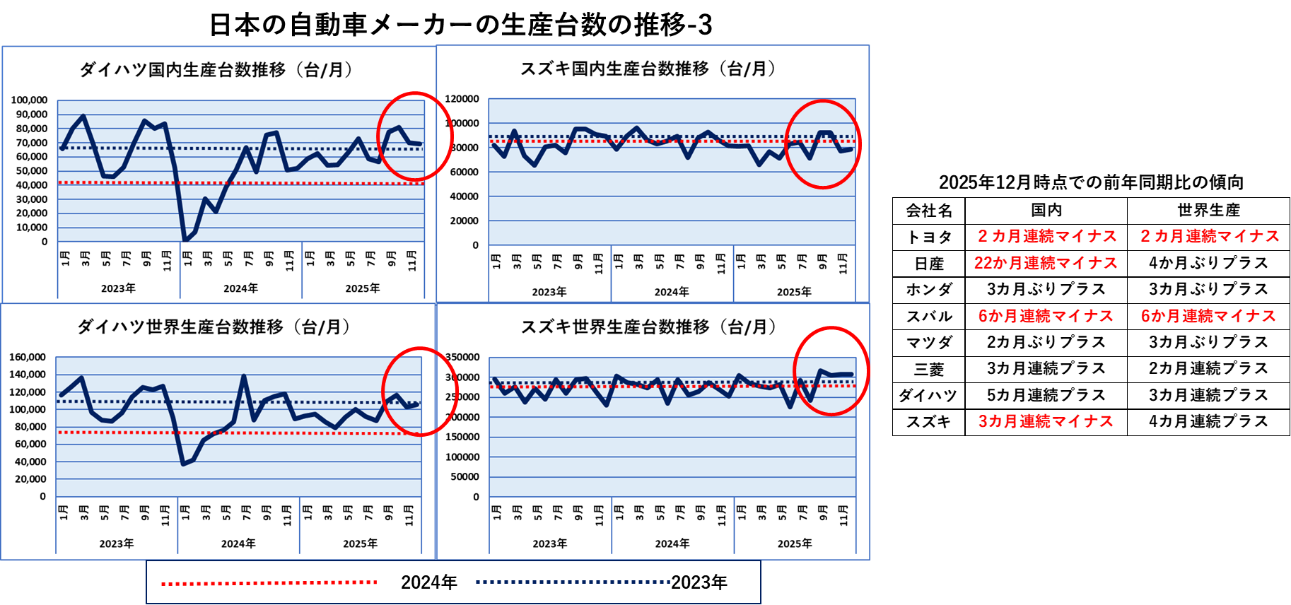 12月の自動車生産・・少し上向き、と2025年のまとめ