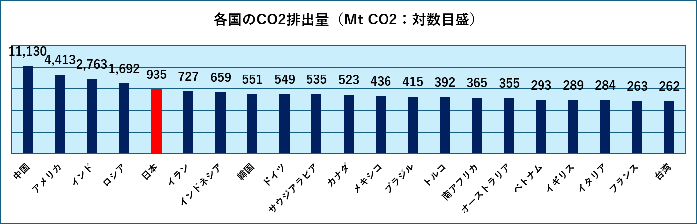 一人あたりの排出量についてはその1年前の2022年のデータとなりますが、非常に興味深い順番でした。