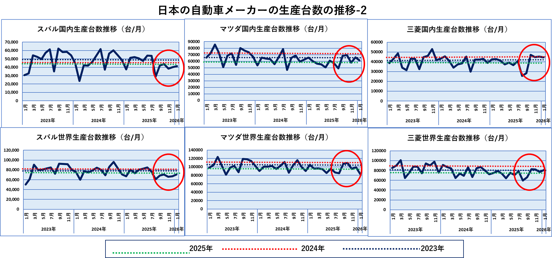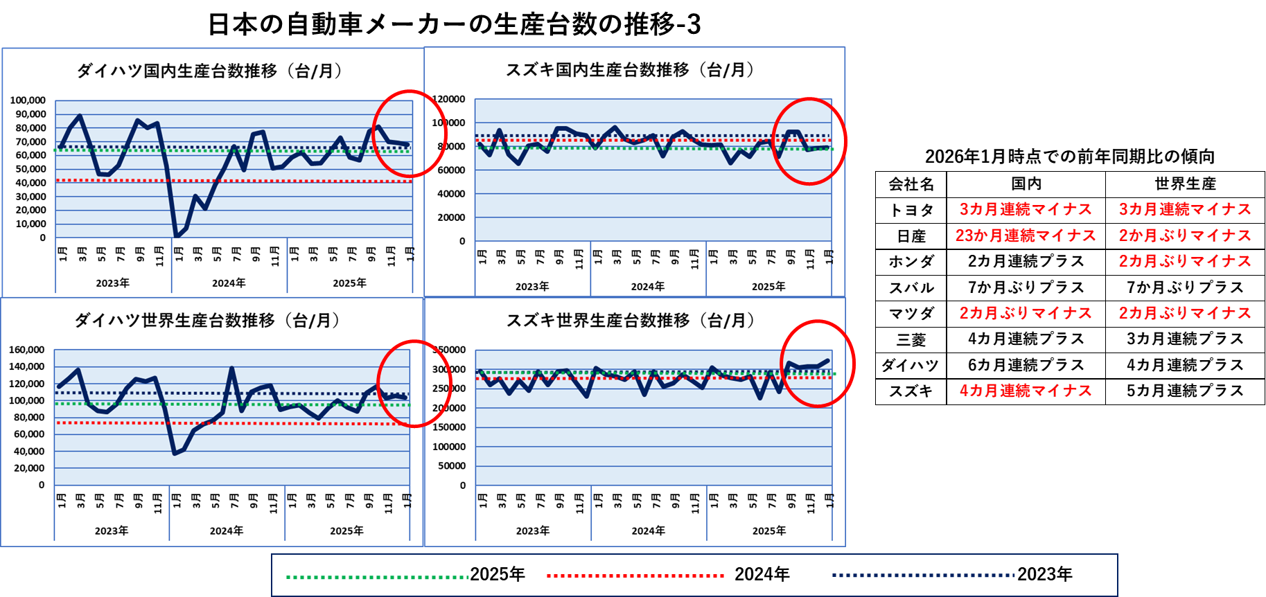 2025年通年で国内生産においては、前年越え:前年未満=43:53、世界生産では前年越え:前年未満=34:62でした。2026年はどうなるのでしょうか?