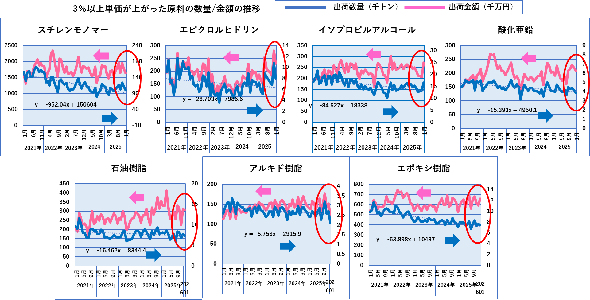 経産省確報に見る塗料原材料の単価動向・・2026年1月度