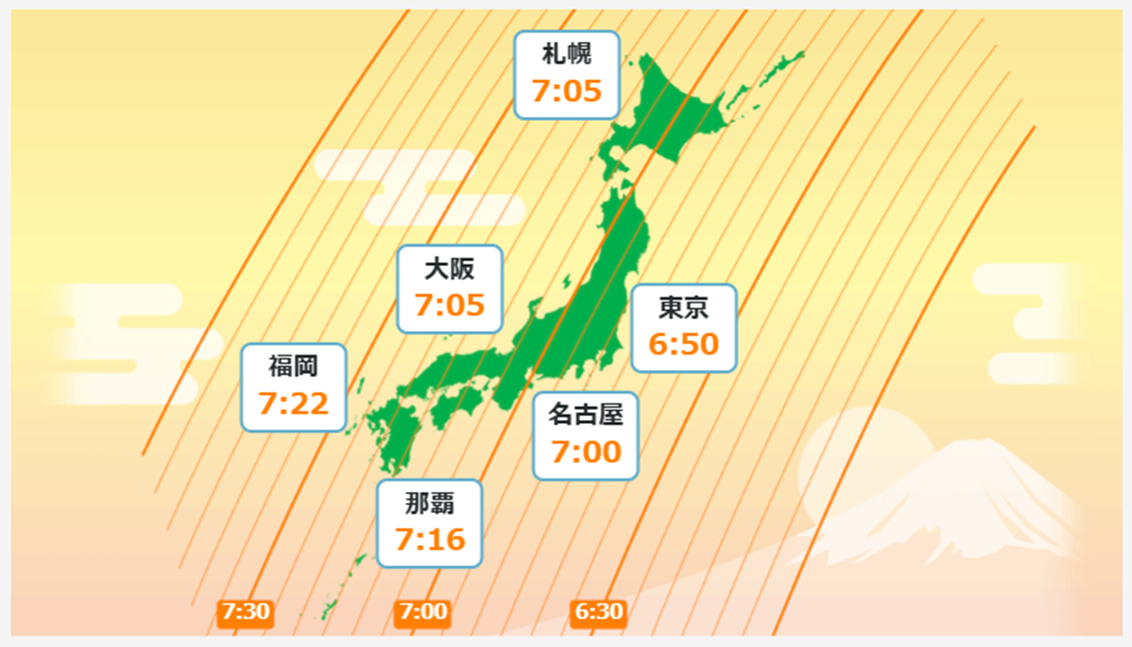 全国の初日の出情報です。厳選した20か所の初日の出時刻を書き出してみました。